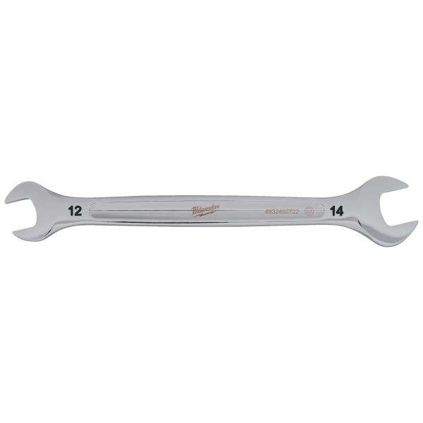 Milwaukee dobbelt ringnøgle med rundt L-profilhåndtag og smalt hoved for bedre adgang. Blækstemplede størrelser og kromfinish til rustbeskyttelse.