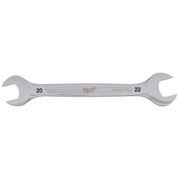 Milwaukee dobbelt ringnøgle med rundt L-profilhåndtag og smalt hoved for bedre adgang. Blækstemplede størrelser og kromfinish til rustbeskyttelse.