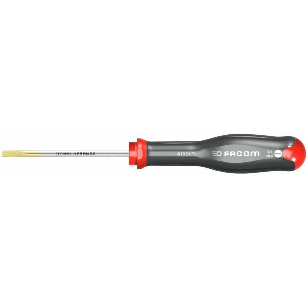 Skruetrækker med et rundt håndtag på 2x75 mm for nem adgang i huller. Håndtaget er lavet af et blødere materiale for øget komfort og er stadig kemikaliebestandigt. Skruetrækkerbladene har "tri-coating" -behandling (zink-nikkel-krom), der giver 4x korrosionsbestandighed, og spids CNC-bearbejdning giver bedre skruepasning, samtidig med at momentoverførslen øges og slid reduceres.