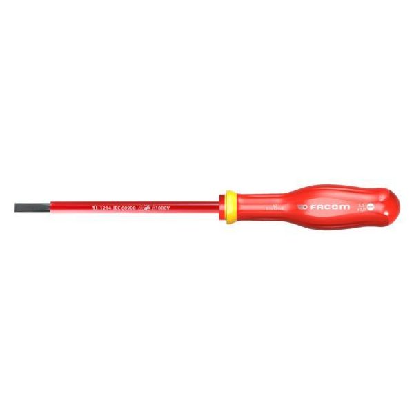 Facom AT3X100VE er en skruetrækker, der er elektrisk sikker og testet til 10.000 volt. Modellen er modstandsdygtig over for kemikalier, har CNC-spidsbearbejdning, der gør det muligt at øge momentoverførslen og reducere slid.