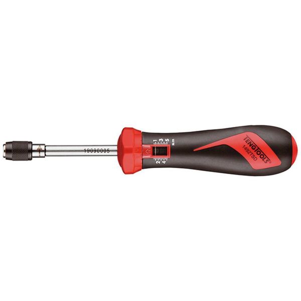 Teng Tools 1492TSI er en momentskruetrækker til præcisionstræk af skruer og bolte. Til højre træk og med 1/4" hurtig borepatron til sekskantbits.