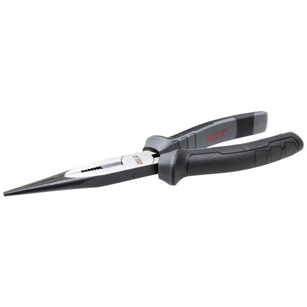 PELA nåltang (spidstang) med en afsmalnende spids, som er et alsidigt og ofte uundværligt værktøj i både hjemmet og værkstedet til detaljerede og præcise opgaver. Tangen er fremstillet af krom-vanadium-stål, hvilket giver den høj holdbarhed og slidstyrke, noget der passer både til professionel og privat brug. Håndtagene er ergonomisk udformede med en tekstureret, halkfri overflade for at give et behageligt og sikkert greb også under længere arbejdsperioder. Nåltangen har desuden en indbygget trådskærer, som gør det muligt at klippe kabler og tråde uden at skulle skifte værktøj. PELA nåltang er et alsidigt og pålideligt værktøj at have i værktøjskassen.