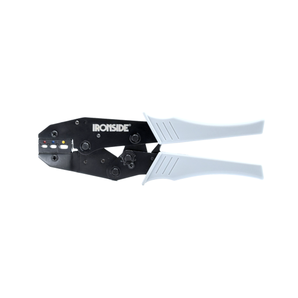 Indbygget spærring, der sikrer, at presningen fuldføres. Presser isolerede kabelsko/kabelterminaler. Farvemarkerede pressebakker 0,5–1 mm² (rød), 1,5–2,5 mm² (blå) samt 4–6 mm² (gul).