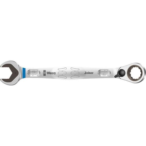 Wera Joker Switch er en u-ring låsenøgle med praktisk holderfunktion gennem en metalplade i åbningen. Den integrerede endekollision forhindrer skruehovedet i at glide nedad og gør det muligt at overføre store drejningsmomenter. Den udskiftelige metalplade i U-nøglen har ekstra hårde tænder, der fastgør skruer og møtrikker og reducerer risikoen for at glide. Den dobbelte sekskantgeometri sikrer en formlåsningsforbindelse til skruen eller møtrikken og reducerer dermed risikoen for at glide.