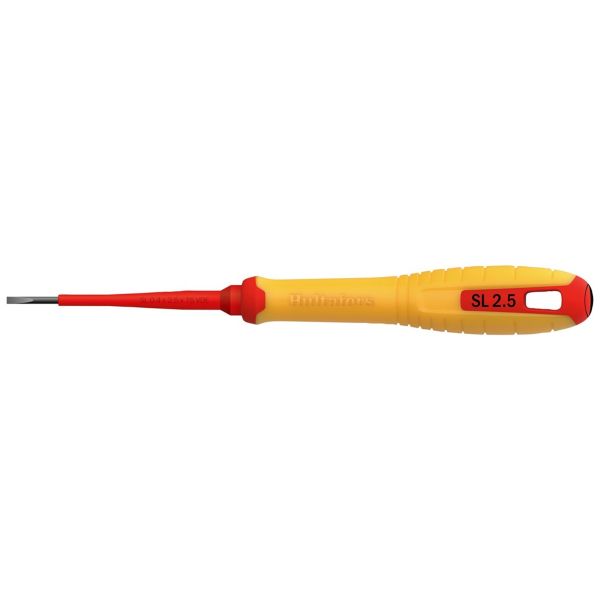Varenr.: 3058578Rilleskruetrækker med isoleret klinge til arbejde i elektriske installationer op til 1000 V. Udviklet til professionel brug sammen med håndværkere.
