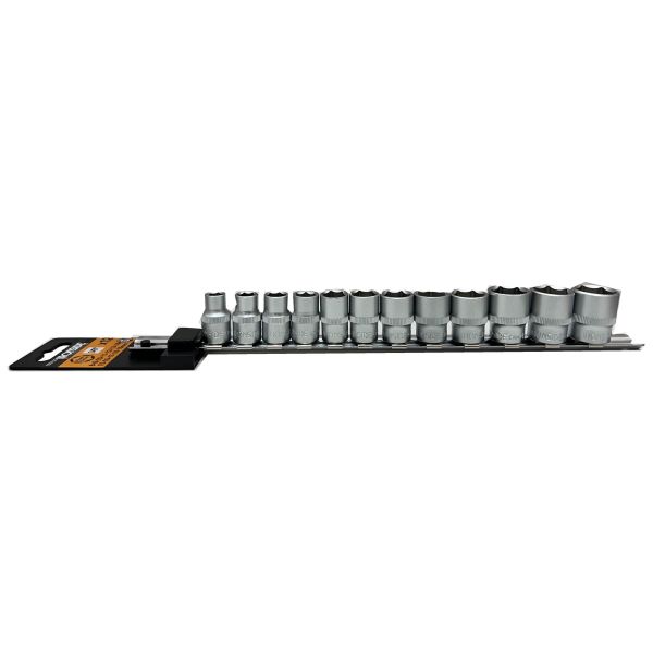 Ironside 103123 er et hylsæt med 12 dele. Hylserne har firkantfeste. Af mattforkromet kromvanadiumsstål med indvendig sekskant og flankdrive. Leveres på metalskinne. Indeholder 12 dele: 8-9-10-11-12-13-14-15-16-17-18-19 mm.