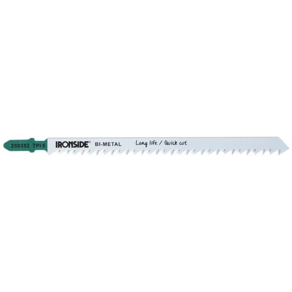 En 152x9x1,25 mm stiksavklinge med bimetallisk serration af høj kvalitet til hurtige snit, til brug i træ med tykkelse 5-100 mm. Klingen er velegnet til lige, ru og præcis savning i hårde og bløde træsorter, alle slags brædder, endda lamineret. Leveres som 5-pak.