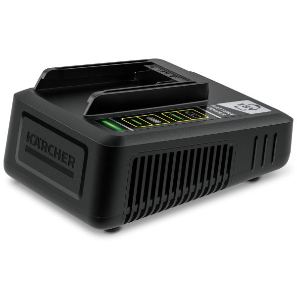 Kärcher 24450320 er en hurtigoplader med et integreret vægbeslag, der gør det nemt at fastgøre den til væggen. Den oplader et 18V/2,5 Ah lithium-ion-batteri til 80 % på kun 44 minutter og fungerer også med alle andre 18 V lithium-ion-batterier fra Kärcher 18V Battery Power-platformen.