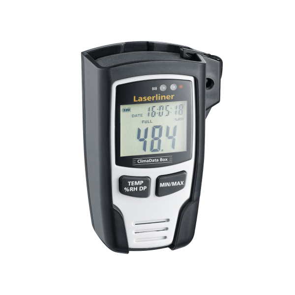 Hygrometeret har en stor intern hukommelse, der rummer op til 49.050 individuelle måleværdier og kan indstilles med måleintervaller fra 1 sekund og op til 24 timer, hvilket gør den fleksibel til både korte og lange måleserier. Data kan nemt overføres til pc via USB og analyseres med den medfølgende engelsksprogede software. ClimaData drives af et langtidsholdbart 3,6 V ER14250-batteri med op til 3 måneders batteritid ved normal brug. Derudover kan du indstille alarmer ved foruddefinerede grænseværdier, hvilket giver ekstra sikkerhed ved kontinuerlig overvågning.