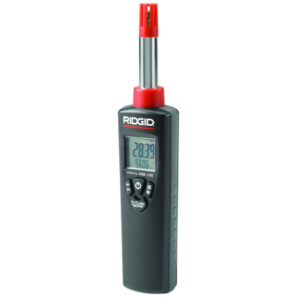 Ridgid HM-100 er en fugtighedsmåler til nem og præcis måling af lufttemperatur og fugtighed. Med dugpunkt og våd temperaturberegning og udstyret med 41/2 dobbelt baggrundsbelyst LCD.