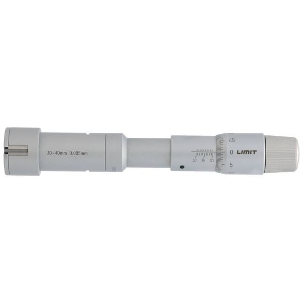 Trepunkts mikrometre og sæt beregnet til hulmåling. Med friktionsanordning, der giver en konstant målekraft og selvcentrerer måleinstrumentet. Måleflader lavet af hårdmetal. Målespidserne når op til 0,5 mm fra bunden af et blindhul. Indstillingsring inkluderet. Det ene sæt indeholder fire mikrometer i 20-50mm og det andet sæt 63-100mm og 2 justeringsringe i hvert sæt. Fremstillet i henhold til DIN 863/4.