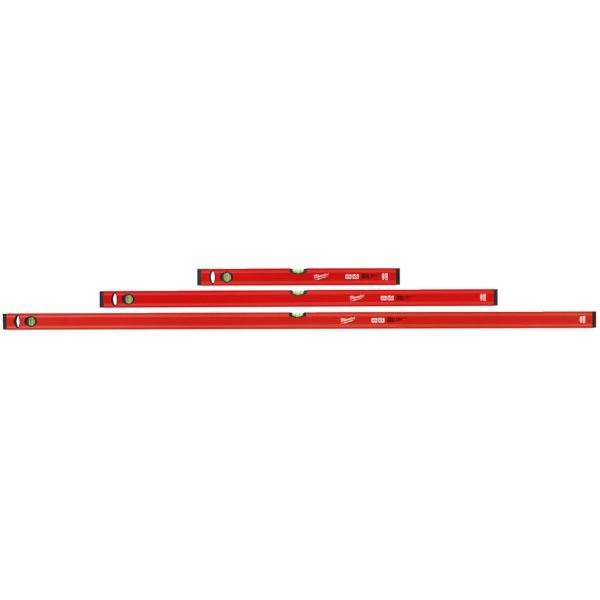 En pakke med tre vaterpas på 60, 120 og 200 cm. Udstyret med to massive blokinjurier i akryl. Vaterpasserne er stødsikre, UV-bestandige og har en planfræset måleflade for maksimal nøjagtighed. Et gummidæksel med skridsikker funktion beskytter væggen. Hvert vaterpas er udstyret med en praktisk løkke til ophængning.