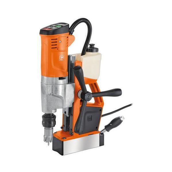 Magnetisk kernebor i enkeltgear hele vejen rundt, 3/4" Weldon-kernebormontering, stor slaglængde, højre/venstre gang og mange funktioner til sikkert og fleksibelt arbejde på byggepladsen. Permanent magnet til sikkert arbejde i højder plus drejelig opbevaret motorkabelbeskyttelsesslange og høj behandlingskvalitet til hård brug. Højt drejningsmoment for vedvarende høj fjernelseshastighed takket være FEIN-motor med høj effekt og hastighedselektronik. Maskine med ekstra stort slagområde til alt borearbejde såsom kerneboring, spiralboring, gevindskæring, nedsænkning og oprivning.