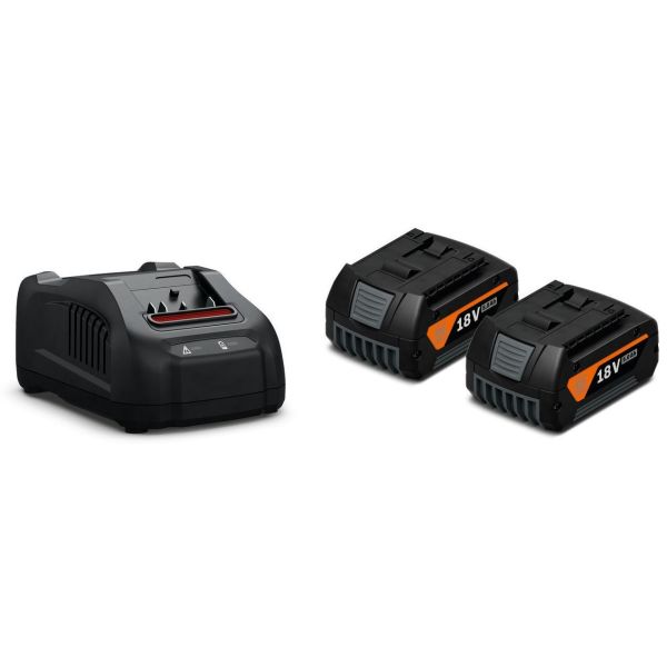 Varenr.: 3112425En opladningspakke, der indeholder hurtigopladeren GAL 1880 CV AS og to 18 V 5.0 Ah AS-batterier. Batteripakke GBA 18V 5.0Ah AS lithium-ion batteri med HighPower celler, opladningsindikation og Electronic Cell Protection (ECP).