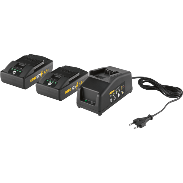 REMS 571589 R220 opladningspakke "Power-Pack" indeholdende 2 stk 21.6 V 1.5Ah batterier til REMS 22V Technology maskiner komplet med oplader.