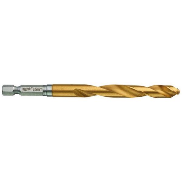 Varenr.: JZ12153-18Metalbor på Ø 8,5 mm med 1/4 " hexbeslag. Arbejdslængde på 70 mm og totallængde på 114 mm.
