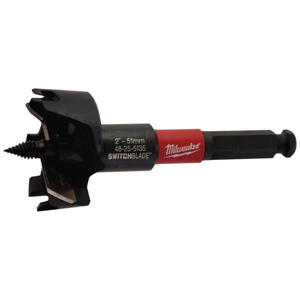 Milwaukee træbor på Ø51 mm med 7/16" hex-beslag og aggressive fremføringsskruer gør det muligt at trække boret hurtigere gennem træet, hvilket resulterer i hurtigere boring. De udskiftelige skær i SWITCHBLADE-boret betyder, at du altid har bor, der er som nye. Dette eliminerer behovet for genslibning og øger dermed produktiviteten. Velegnet til alle håndværkere, elektrikere, blikkenslagere og VVS-ingeniører, der har brug for at bore huller i træ til alle typer rør, ventiler og kabelkanaler.