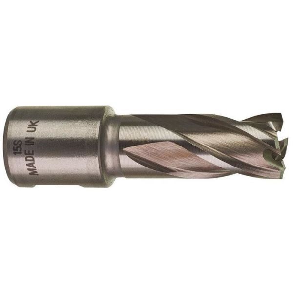 Kernebor med Weldon-fastgørelse og en diameter på 15 mm til boring i metal.