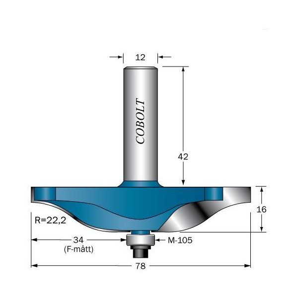 Cobalt 325-078 er en friseskærer med styrelejer. R=22,2, D=78, L=16, S=12.