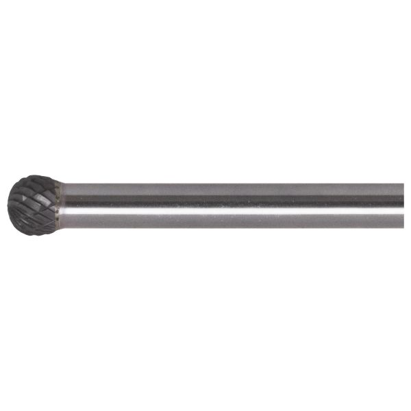 Kugleformet roterende fil til afgratning af svejsesamlinger og huller på afrundede overflader. Medium tandet med spånafbryder og lavet af hårdmetal.