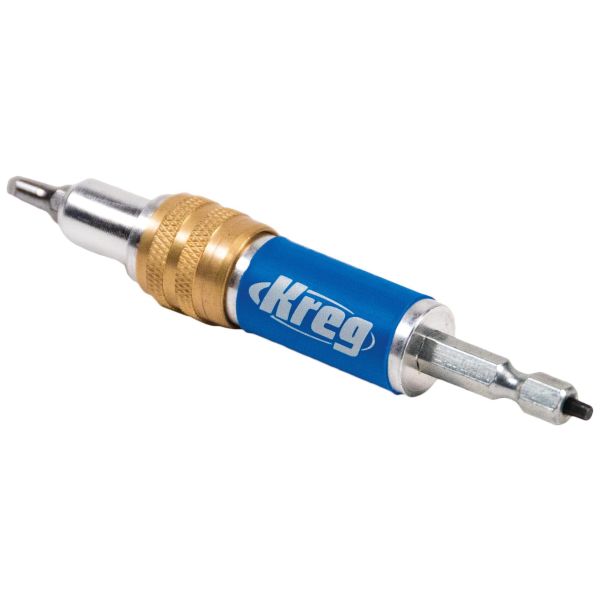 Kreg Quick-Flip er en holder, der gør det muligt at bruge Kreg-skruer til en række stærke, enkle samlinger - alt sammen med et enkelt værktøj. Quick-Flip har en indsats med dobbelt ende i et hus med hurtig frigivelse. På den ene side er et bor beregnet til at bore et perfekt pilothul til en Kreg-skrue plus en fræser, der borer en fladbundet forsænkning, som skruehovedet passer ind i. Vend derefter indsatsen for at eksponere den anden ende: en #2 firkantet bit specielt designet til brug med Kreg-skruer.