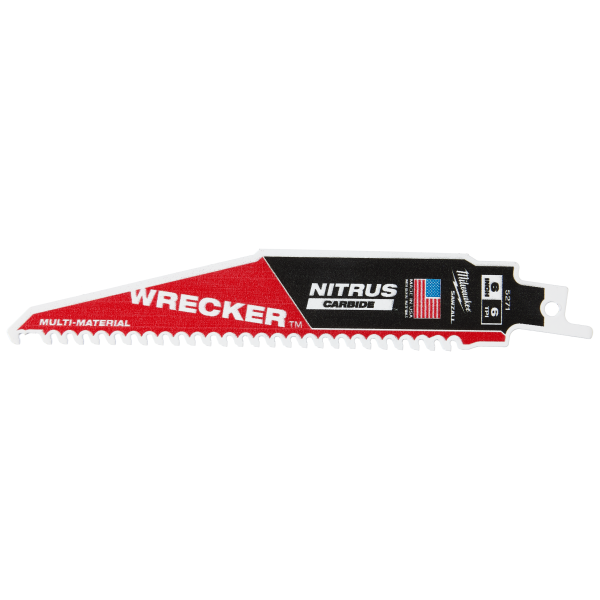Milwaukee TCT WRECKER NITRUS er en tigersavklinge med NITRUS CARBIDE-tænder, som giver op til 3x længere levetid end hårdmetalblad i multimaterialeapplikationer, eller op til 100x længere levetid end standard bimetalblad.