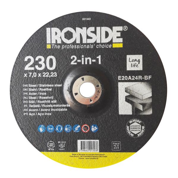 To-lags navpude i størrelse 230x7x22 mm, med høj kvalitet til krævende industriel brug. Puden er effektiv til blød slibning og har høj materialefjernelse ved slibning i forskellige typer stål, rustfrit stål og legeringer.