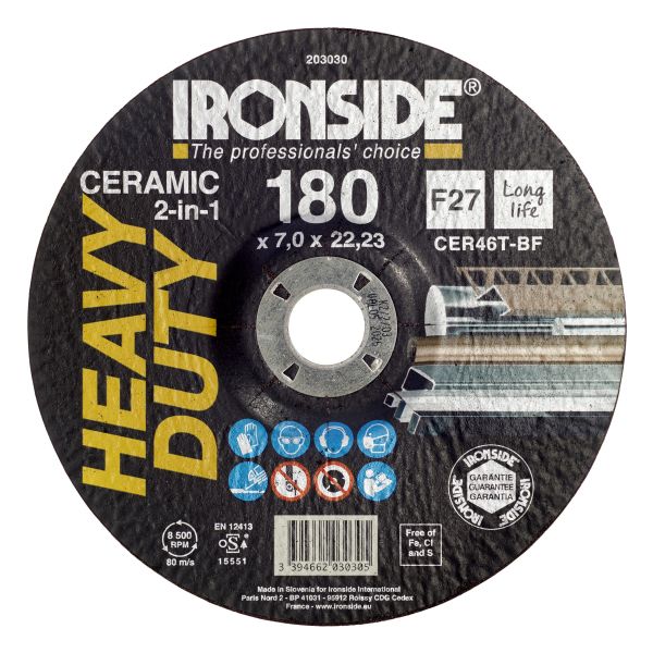Ironside 203030 er en keramisk navskive til de hårdeste metaller. Maksimer arbejdstiden på arbejdspladsen med en overlegen kombination af levetid og slibhastighed for maksimal produktivitet.