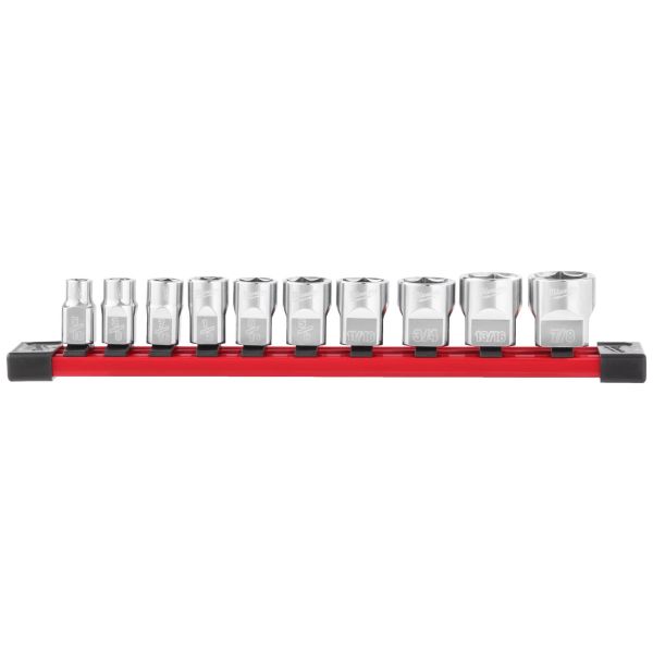 - 10 stk. hylser: 5/16″, 3/8″, 7/16″, 1/2″, 9/16″, 5/8″, 11/16″, 3/4″, 13/16″, 7/8″