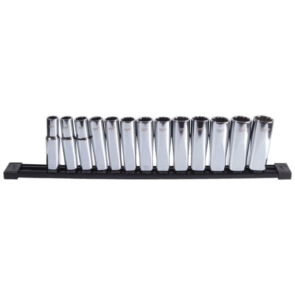 FOUR FLAT™ på siderne af topnøglen forhindrer, at den ruller. FOUR FLAT™-sider kompatible med skiftenøgle. Blækstempling for bedre synlighed. Forkromet overflade. 1/2" lange 12-kantstoppe: 12 mm, 13 mm, 14 mm, 15 mm, 16 mm, 17 mm, 18 mm, 19 mm, 20 mm, 21 mm, 22 mm, 23 mm, 24 mm.