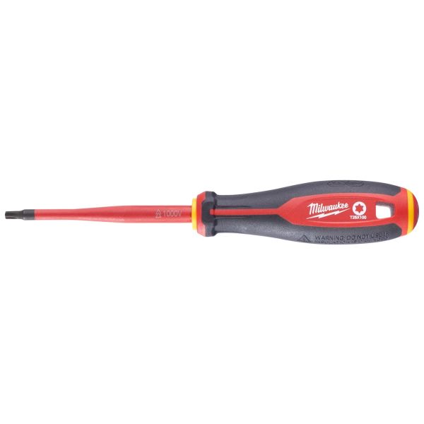 Milwaukee Tri-Lobe VDE er en VDE-testet skruetrækker til 10.000V og garanteret til 1000V. Skruetrækkeren har en smal skaftdiameter for adgang til lavtliggende skrueapplikationer og praktisk Tri-Lobe-håndtag, der er optimeret til maksimal brugerkomfort og applikationer med højt drejningsmoment. Værktøjet har permanente synlige ID-mærker for hurtig værktøjsidentifikation, og der er huller til værktøjssikring. Håndtaget er 3-sidet for at forhindre rulning.