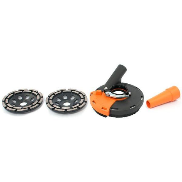 Varenr.: 2890067Diamantbånd til tørslibning i beton. Sættet indeholder støvudsugning til slibning, 2 diamantslibeskåle Dual 125 og adapter til tilslutning til støvsugere.