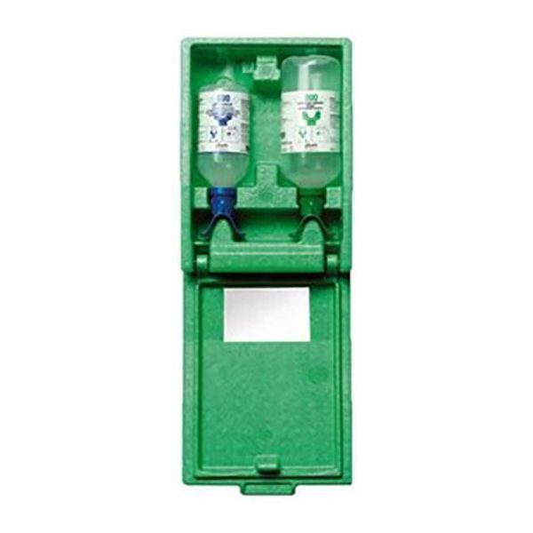 Varenr.: 2640122Øjenvaskestation til vægmontering, leveres med Plum Eyewash DUO (1000 ml) og Plum pH Neutral DUO (500 ml).