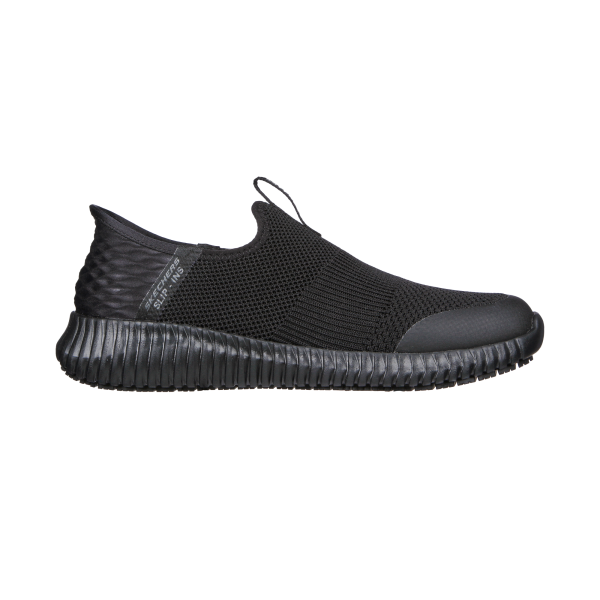 Nyhed fra Skechers! Skridsikker Work-model med Air Cooled Memory Foam-indersål, som former sig efter foden og giver en behagelig komfort. Den nye Slip-Ins-teknologi med fast hælkappe giver støtte, stabilitet og komfort. Det er bare at træde i skoene – med Slip-Ins kan du nemt og bekvemt tage skoene på uden at bruge hænderne.