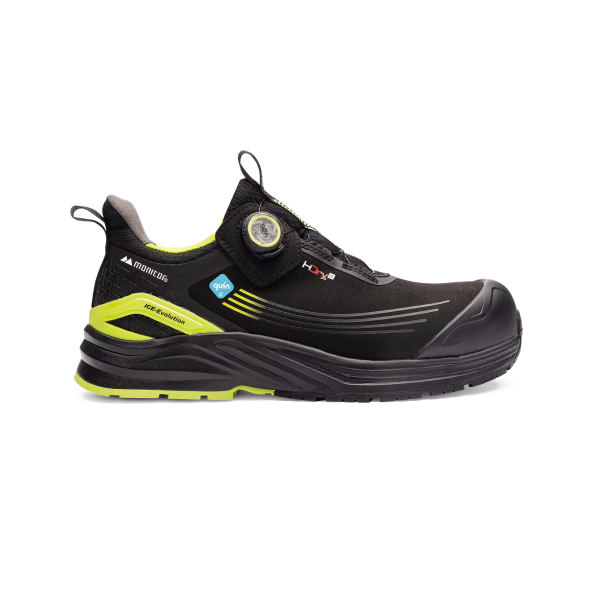 Avanceret sikkerhedssko udstyret med et NFC‑chip fra Quin og et unikt M‑Return-sålsystem med ydersål i gummi samt mellemsål i Super Critical Foam, som giver fremragende stødabsorbering og dæmpning. Høj komfort med Monitors nye Equip Fit-pasform, der er tilpasset tåværnet MNTR1. Li2 BOA Fit System og HDry Bio-membran, som gør skoen fuldstændig vandtæt. EN ISO 20345:2022 S7S.