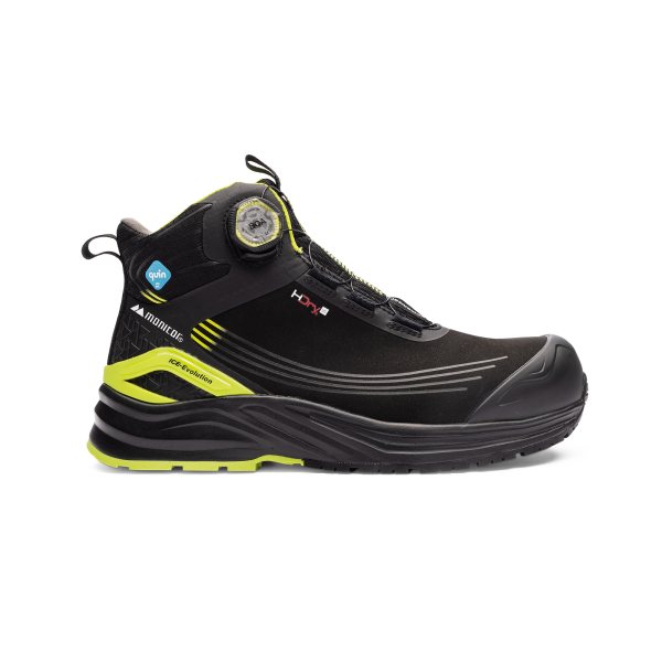 En avanceret sikkerhedssko udstyret med en smart SFC-chip fra Quin og et unikt M-Return-sålsystem med ydersål i gummi samt mellemsål i Super Critical Foam, som giver fremragende stødabsorbering og dæmpning. Høj komfort med Monitors nye Equip Fit-pasform, der er tilpasset tåkappen MNTR1. M4 BOA Fit System og HDry Bio-membran, som gør skoen helt vandtæt.