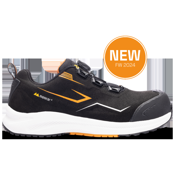 Monitor Recharge One har en bred pasform med en komposit tåhætte og en spikbeskyttelse i APT. Overdelen er fremstillet i mikrofiber med en gummiforstærkning ovenpå tåhætten. Mellemsålen er fremstillet af EVA, og slidsålen i HRO- og FO-gummi, og indersålen er fremstillet af polyurethan med tekstilbetræk. Snøringen er udstyret med BOA Fit System L6. Skoen er metalfri.