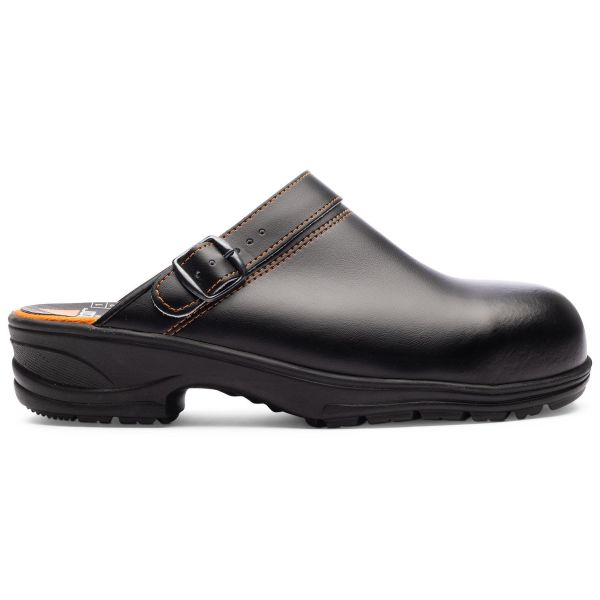 Varenr.: 3049823Klassisk beskyttende hjemmesko med overdel i slidstærkt pu-coated læder. Indersålen er lavet af Texon og ved siden af foden er der en blød latex seng, der er dækket af fugtabsorberende Cambrelle tekstil. Indersålen er også ergonomisk designet med både pude- og tågreb. Ydersålen er en skridsikker sål, der er certificeret i henhold til SRC. Hælremmen er elastisk og justerbar, så den passer til alle brugere. Uden perforering.