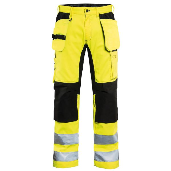 Varenr.: 3075653Bukser med høj synlighed med stretchpaneler i skridtet, balderne og knæpudelommerne i CORDURA® stretch for optimal komfort. Bukserne er udstyret med hængelommer og lineallomme.