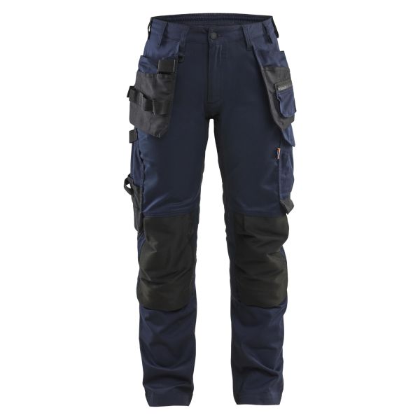En behagelig, let håndværksbuks med damepasform i et tyndere 2-vejs stretchmateriale og med paneler i 4-vejs stretch, som virkelig giver optimal komfort, dér hvor den behøves mest. Bukserne har faste sømlommer, høj og justerbar talje, bundfyldt knæbeskytterlomme med CORDURA-stretch, praktiske forstærkede lommer, tommestoklomme, forlommer samt strop til hammerholder på både venstre og højre side. Findes også som herremodel 1750.