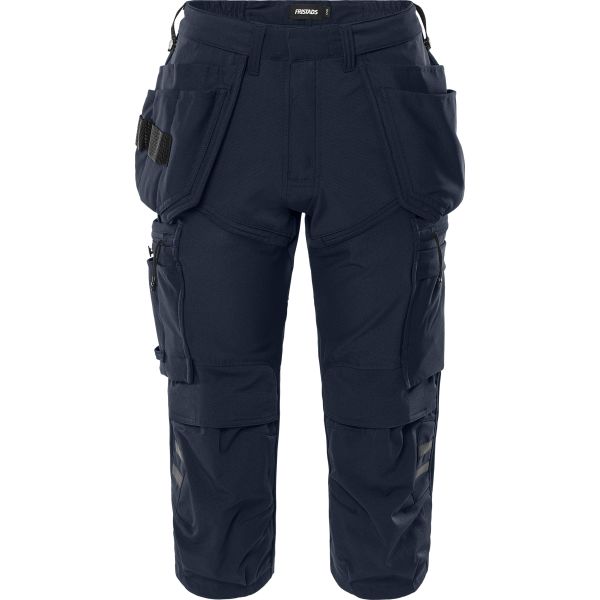Letvægtsmateriale med 4-vejs stretch / Slidstærkt ripstop-materiale med 4-vejs stretch foran og bagpå / Indvendig sidestrik/elastik i linningen / 2 løsthængende forstærkede sømlommer, den ene med 3 mindre lommer og værktøjsstropper, den anden med ekstra lomme / Sømlommerne er aftagelige med skjult lynlås / Skjult knap i linningen / 2 forlommer / 2 baglommer med lynlås / Dobbelt forstærket skridtsøm / Hammerstrop / Tommestoklomme i ripstop-stretch, lårlomme med trykknap, lomme med lynlås, pennelomme og 2 værktøjslommer samt knap og strop til kniv / Lårlomme med trykknap, lomme med lynlås samt telefonlomme, id-kortlomme og D-ring under klap / Knælommer i ripstop-stretch med åbning udefra, oppefra / Knæpuderne i knælommerne kan højdejusteres / Refleksdetaljer / Godkendt i henhold til EN 14404 sammen med knæpude 124292 / OEKO-TEX-certificeret.