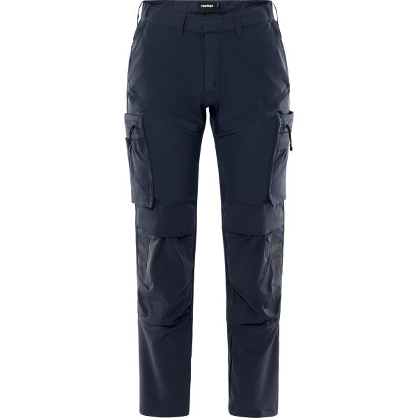 Delvist genanvendt materiale / Letvægtsmateriale med 4-vejsstretch / Slidstærkt ripstop-materiale med 4-vejsstretch foran og bagpå / Indvendig sidderesår i taljen / Skjult knap i taljen / 2 forlommer / 2 baglommer med lynlås / Dobbeltforstærket skridtsøm / Benlomme med trykknap og indvendig strop, der holder en tommestok på plads, lomme med lynlås, pennelomme og 2 værktøjslommer / Benlomme med trykknap, lomme med lynlås samt telefonlomme, id-kortlomme og D-ring under klap / Knælommer i ripstop-stretch med åbning udefra, oppefra / Knæpuderne i knælommerne kan højdejusteres / Refleksdetaljer ved knæ og bag på benafslutning / Ripstop-forstærket bagside af benafslutning / Godkendt i henhold til EN 14404 sammen med knæpuder 124292 / OEKO-TEX-certificeret.