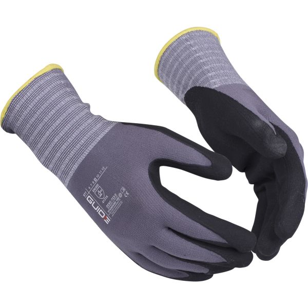 GUIDE GLOVES 577 PP er en tynd, palmdyppet arbejdshandske i nitril, mikrofoam, der giver et meget godt tørgreb og en barriere mod fugt. Godkendt til kontaktvarme niveau 1. Oeko-Tex-godkendt.