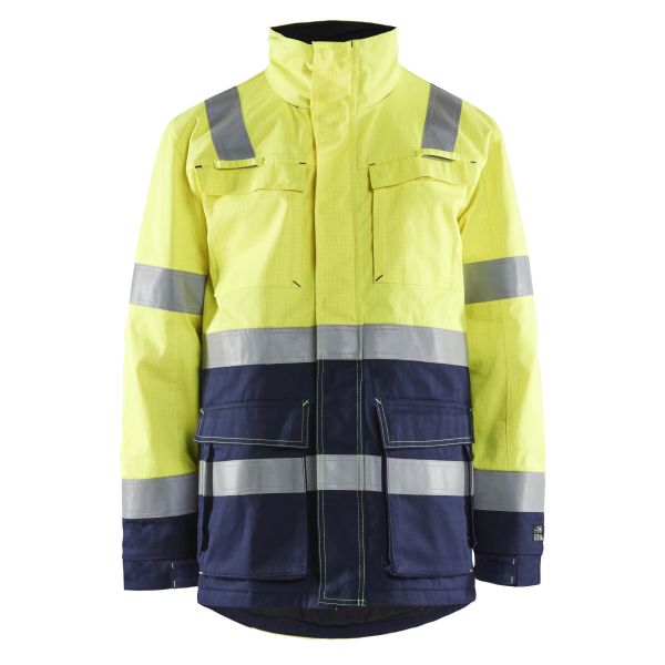 Flammesikker, slidstærk og vatteret vinterparka, som er velegnet til arbejde i udsatte og kolde miljøer. Kraven er udstyret med knapper, så hætten 2169 (sælges separat) kan monteres. Den olie-, smuds- og vandafvisende jakke har to gasdetektorholdere, tovejslynlås, justerbar talje, indvendig ribkant ved ærmeafslutning samt sidelommer. Certificeret i henhold til EN ISO 20471, EN 1149-5, IEC 61482-2, EN ISO 11612, EN 342, EN ISO 11611 og EN 13034.