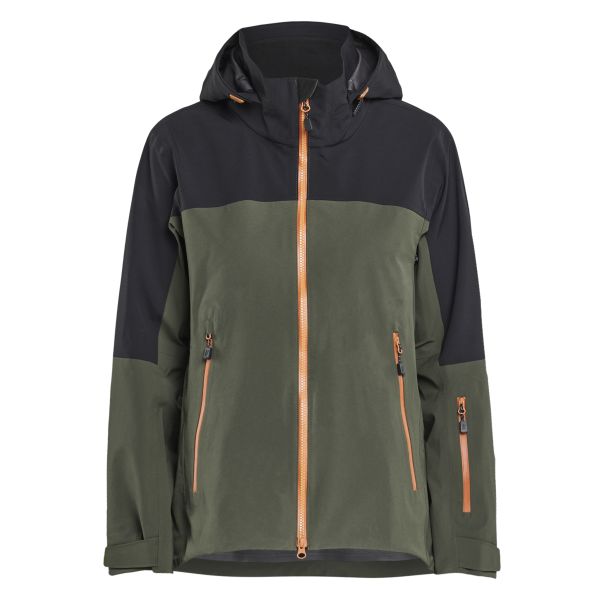 Behagelig skaljakke i strækbart materiale af høj kvalitet, der egner sig perfekt som det tredje/ydre lag. Denne jakke med damemodel og tovejslynlås er vind- og vandtæt med tapede sømme og har en fast hætte. Lynlåse under ærmerne giver ekstra ventilation efter behov, og frontlukningen med vindfang giver et ekstra lag beskyttelse mod vind og vejr. Rummelige lommer med lynlås giver plads til meget, også større dokumenter. Findes også som herremodel 4980.