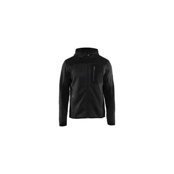 Strikjakke med hætte i stilrent design og behagelig kvalitet, jakken har lynlåse i en kontrastfarve og er forstærket med softshell-materiale på skuldre og lænd for øget holdbarhed. Fritid som arbejde, dette er jakken at trives i, fås også som damejakke 4931 farve grå/sort. Forstærket skuldersektion, fast hætte, lynlås foran udstyret med fleeceforet klap, brystlomme med lynlås, forlommer med lynlås. Forlænget lænd, ærmeafslutninger med elastik. Materiale: 100% polyester, strik, 170 g/m².