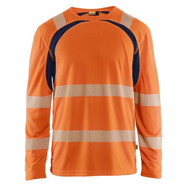 Arbejder du udendørs, ved du, hvor vigtigt det er med gode beklædningsdele, der fungerer, når temperaturen stiger. Denne funktionelle langærmede T-shirt i hi-vis/varseltøj har segmenterede refleksstriber og strategisk placerede meshpaneler for optimeret fugttransport.
