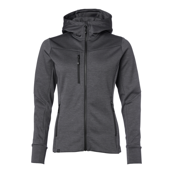 Blød og funktionel powerfleece med fleece inderside. Hætte med høj krave og skråt bærestykke. Brystlomme og to sidelommer med lynlås. Ekstra høje manchetter ved ærmeafslutning og justerbar underkant med elastisk snøre.