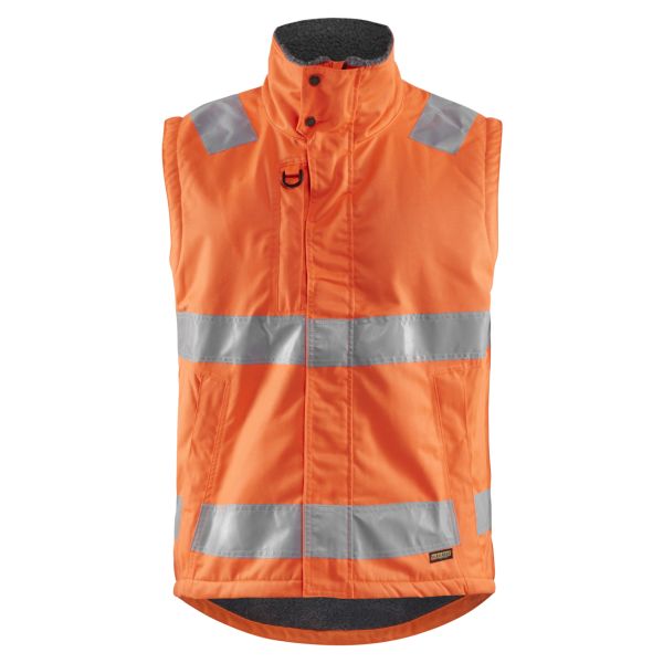 Varm og behagelig hi-vis-vest med plysfor, som egner sig til mange forskellige fagområder og kan bæres hele året. Vestens yderstof er vand- og smudsafvisende, og den har en skjult, kraftig énvejslynlås. Den er udstyret med flere praktiske lynlåslommer samt kængurulomme på ryggen til handsker og lignende. For ekstra komfort er ryggen forlænget, og nederkanten kan justeres med snoretræk.