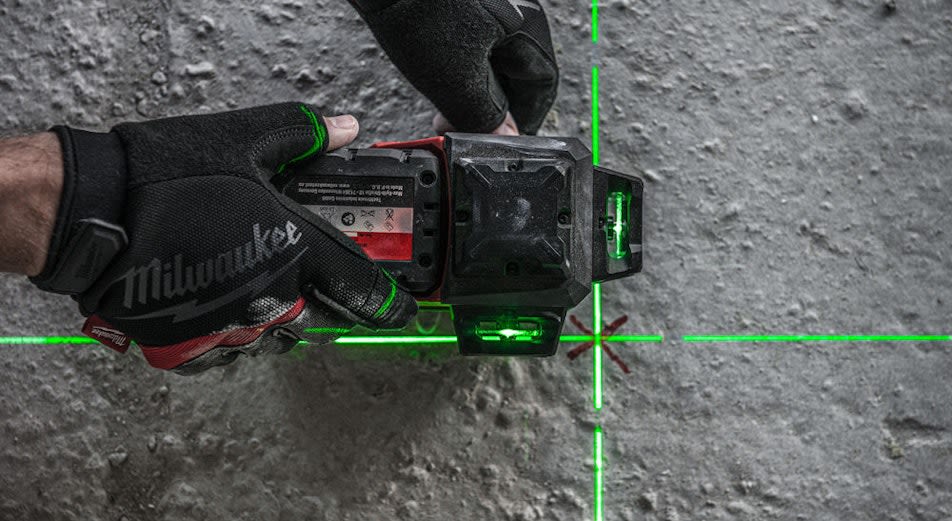 Krydslaser med nøjagtighed på +/- 4mm @ 10 M. Grøn laserstråle giver et udvidet arbejdsområde og bedre synlighed.